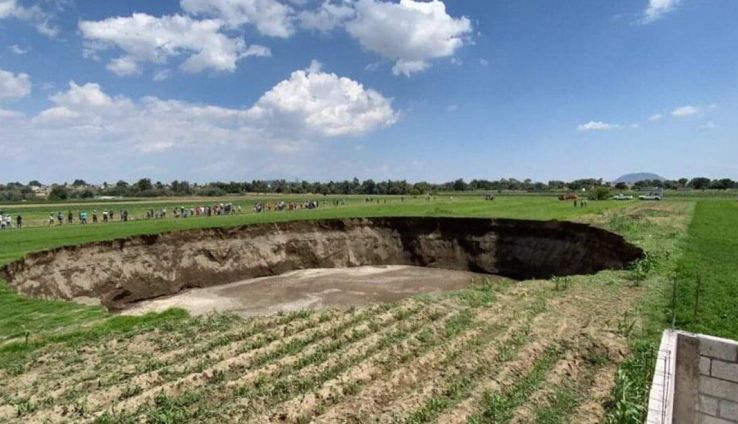 Luego de que una falla geológica provocó un socavón de casi 100 metros de diámetro en el municipio Juan C. Bonilla en Puebla, se informó que éste tuvo un aumento en su tamaño de 17 metros en su diámetro.