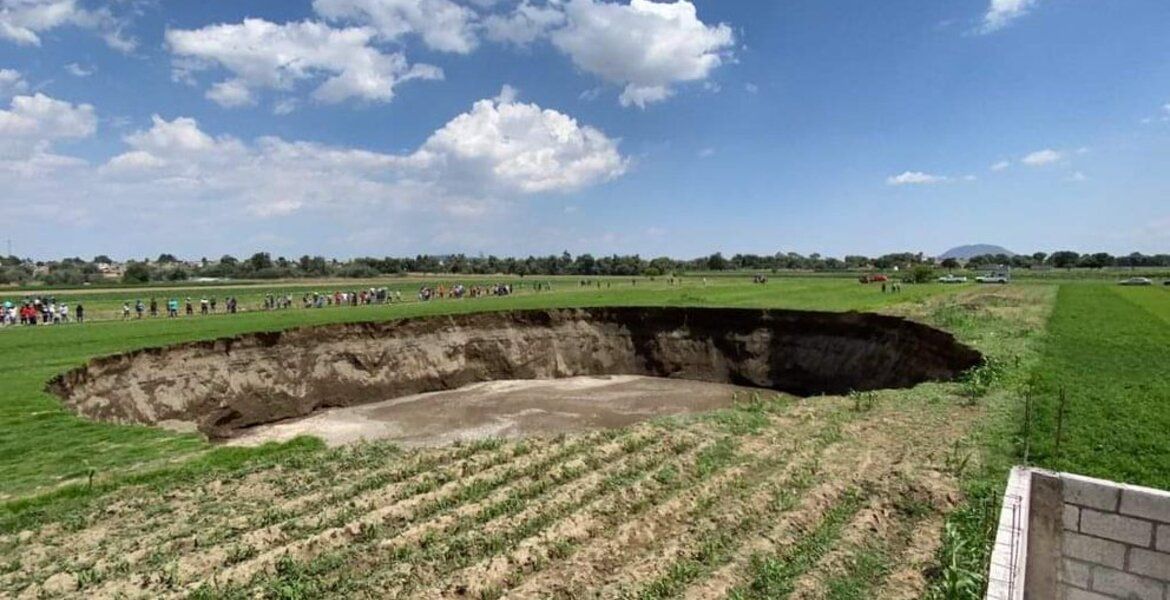 Luego de que una falla geológica provocó un socavón de casi 100 metros de diámetro en el municipio Juan C. Bonilla en Puebla, se informó que éste tuvo un aumento en su tamaño de 17 metros en su diámetro.