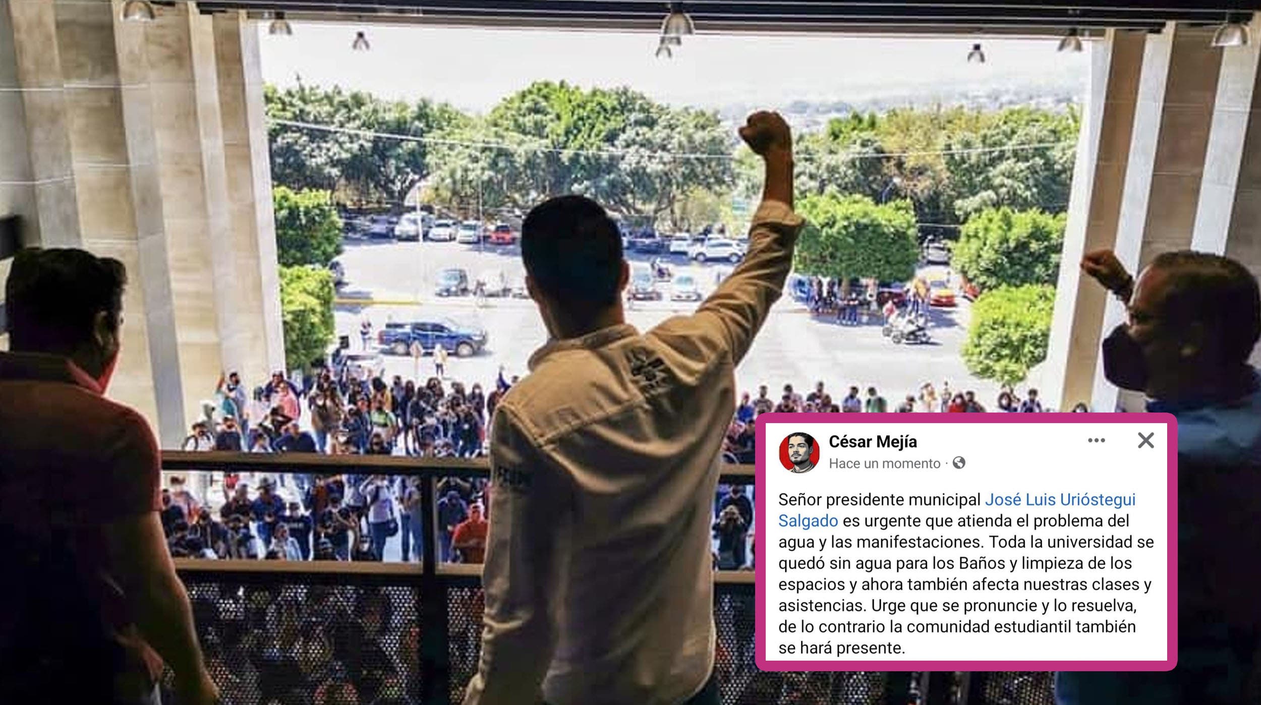 En un mensaje publicado en sus redes sociales, Mejía mencionó que toda la Universidad se quedó sin agua para los baños y para la limpieza de los espacios de la misma, aunado a esto ahora también afecta las clases de los estudiantes al no poder llegar a tiempo a causa de los bloqueos, por lo que solicitó urgentemente que el alcalde de Cuernavaca se pronuncie y resuelva el conflicto, de otra manera la comunidad estudiantil también se hará presente.