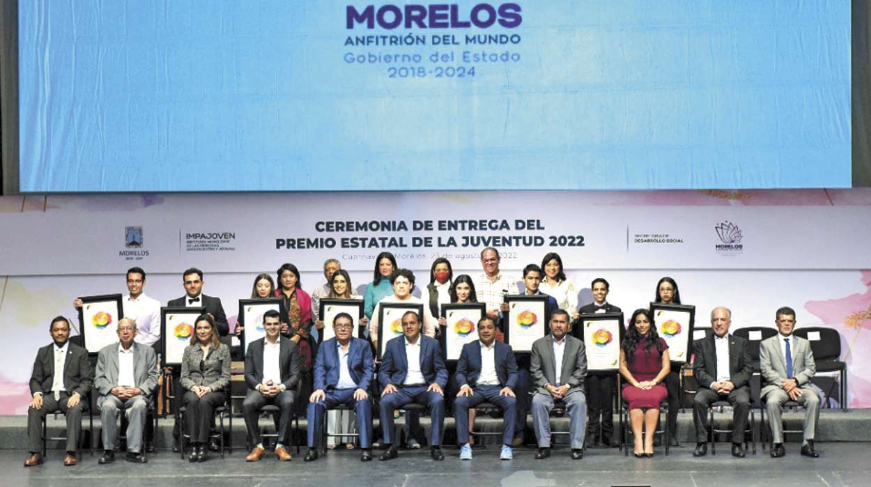 CUERNAVACA, MORELOS.- El Gobernador Cuauhtémoc Blanco Bravo entregó el Premio Estatal de la Juventud 2022 a nueve adolescentes y jóvenes destacados en diversas áreas.