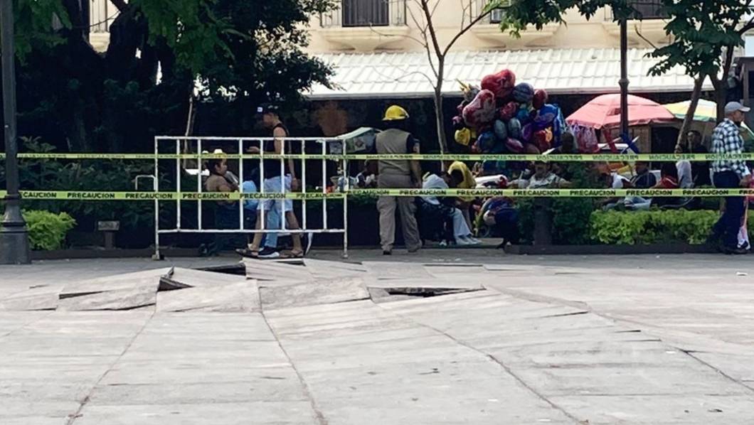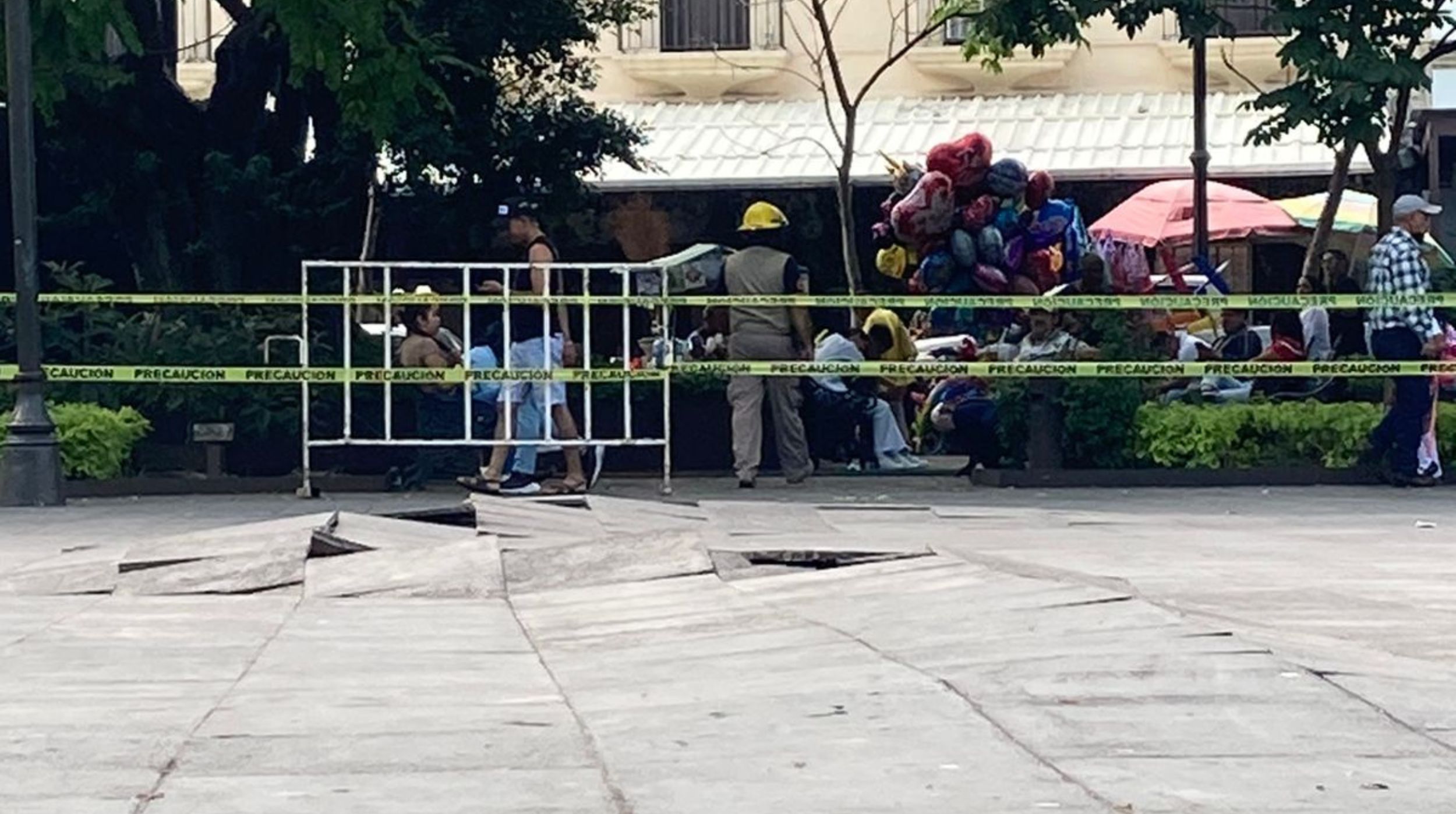 La tarde de ayer ciudadanos fueron sorprendidos al presenciar el levantamiento del suelo en un área de la Plaza de Armas, Emiliano Zapata, ubicada en el centro de Cuernavaca.