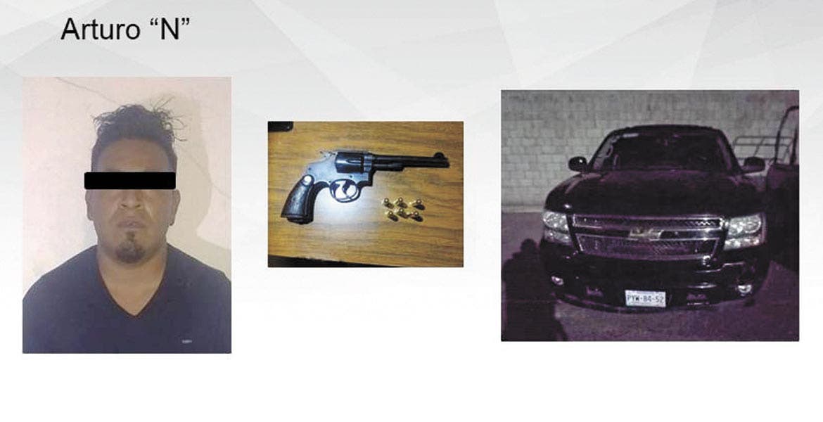 Arturo, de 31 años, fue detenido con un revólver calibre 38 especial y varias balas, en una camioneta en la carretera federal México–Cuernavaca, a la altura de Tres Marías, en Huitzilac.