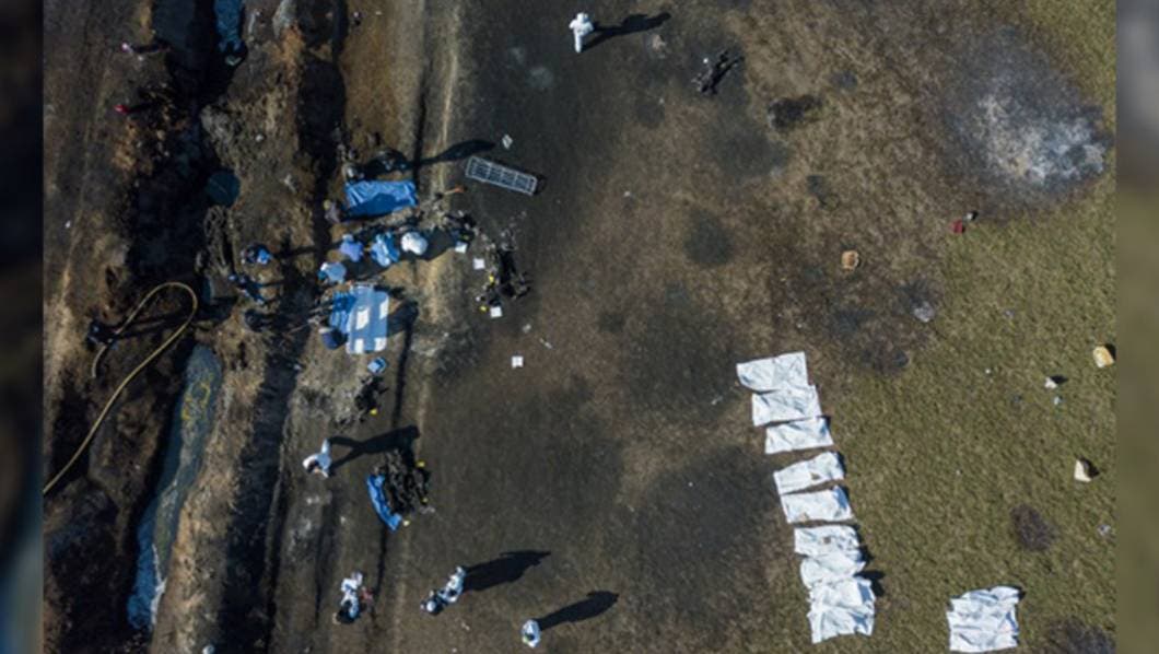 Ciudad de México, 24 de enero de 2019. El número de muertos por la explosión y un incendio posterior en un ducto de Pemex en Tlahuelilpan, Hidalgo, aumentó a 107, de acuerdo con el informe más reciente de Presidencia de la República.