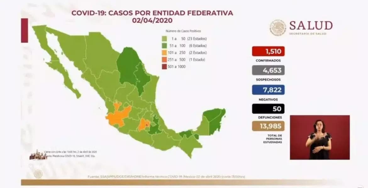 De acuerdo con lo revelado en la conferencia de prensa, se registran 50 decesos al corte de este jueves, con 1 mil 510 casos confirmados, 7 mil 822 Negativos y 4 mil 653 Sospechosos.