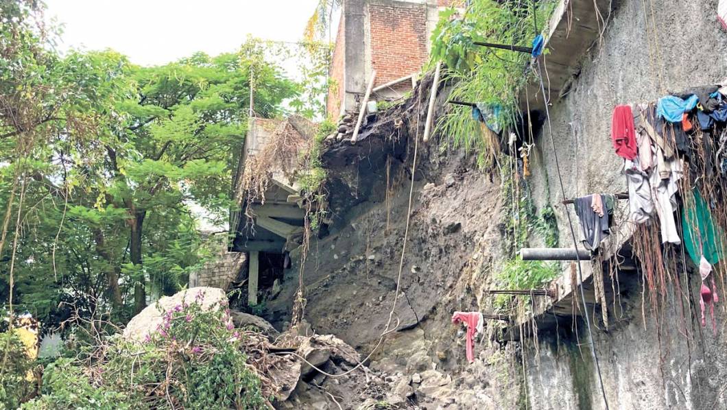 Derrumbe. Algunas viviendas prácticamente quedaron ‘volando’ con la caída del paredón.