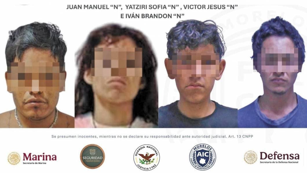 De acuerdo con la Fiscalía General del Estado (FGE), los presuntos plagiarios fueron identificados como Yatziri Sofía “N”, Juan Manuel “N”, Víctor Jesús “N” e Iván Brandon “N”.