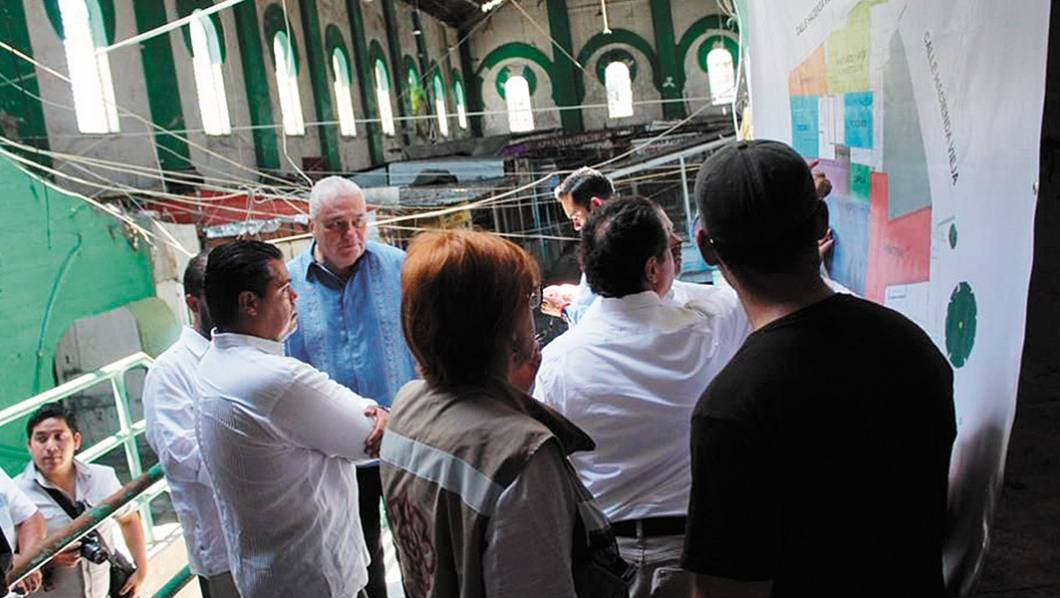 Después acudieron al mercado “Lázaro Cárdenas”, que sufrió daños mayores por el sismo.