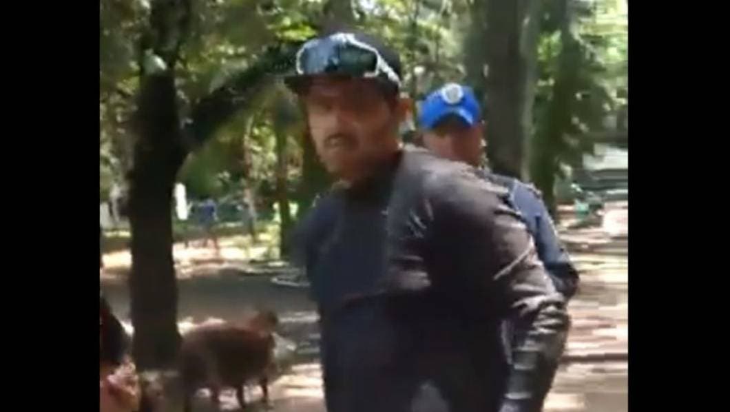 En redes sociales publicaron este lunes un video donde aparece un supuesto entrenador asfixiando a un perro, de la raza Husky, en el Parque México, en la colonia Condesa, Ciudad de México.