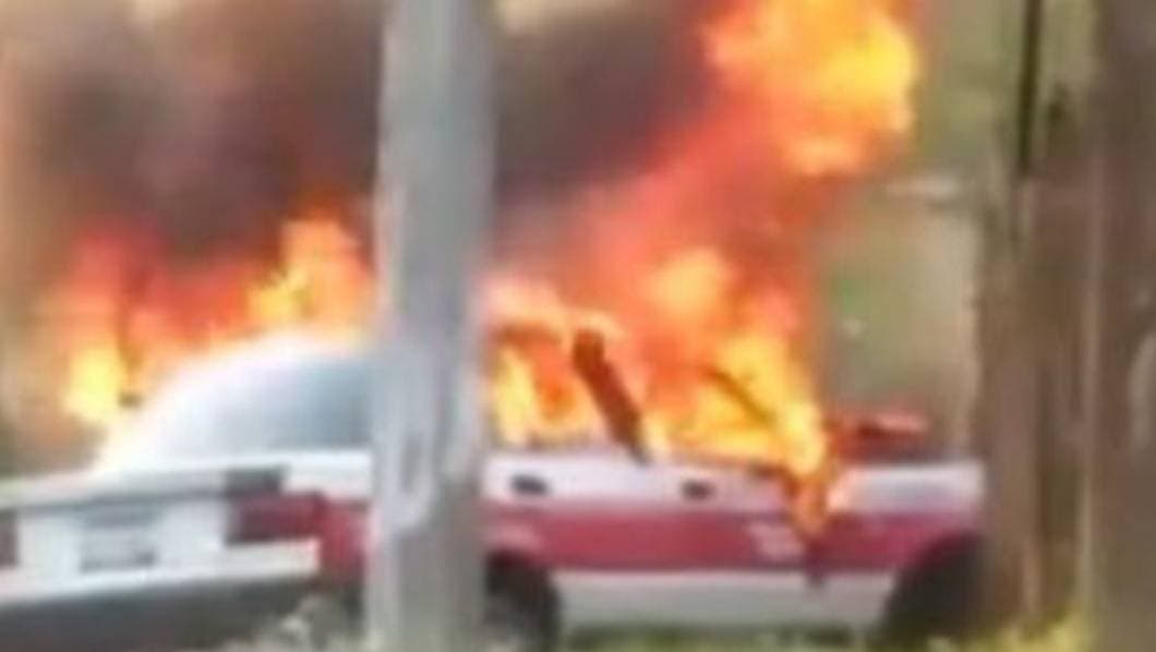 En uno de los videos que circula en las redes sociales se pude escuchar como suena el claxon mientras el taxi se incendia y los testigos deciden refugiarse ante tales actos de crueldad.