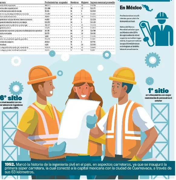 - El Observatorio Laboral de la Secretaría del Trabajo y Previsión Social muestra la estadística de las ingenierías: