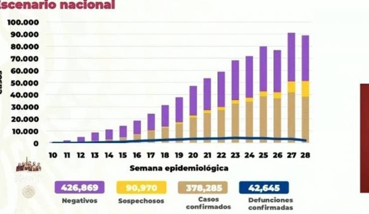 Son 390 mil casos y más de 43 mil muertes por COVID-19 en México
