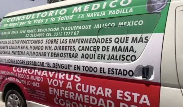 Con megáfono en mano, policías municipales de Tlaquepaque, en Jalisco, detuvieron a Juan Ángel, de 76 años, que vendía a bordo de una van un falso tratamiento para curar el coronavirus COVID-19.