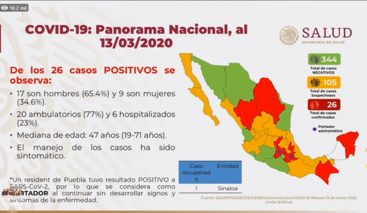 Son ya 26 casos de coronavirus en México; 11 más que el jueves