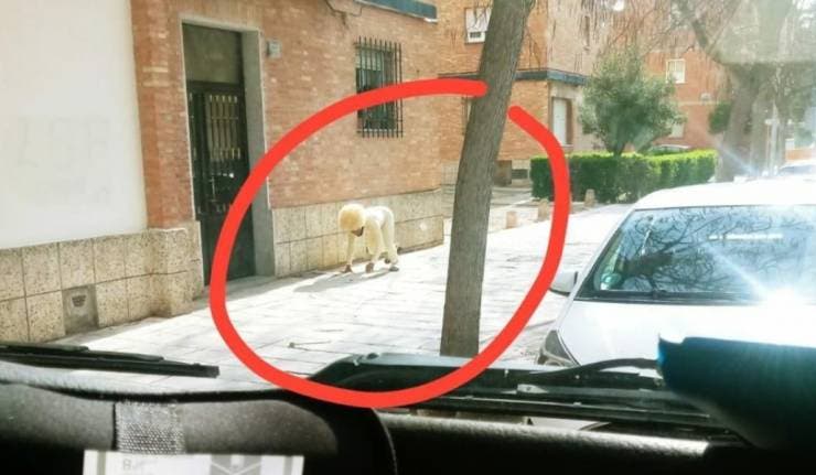 En Madrid, una de las ciudades que permanece aislada por la contingencia del coronavirus COVID-19, un hombre se disfrazó de perro para salir a la calle.
