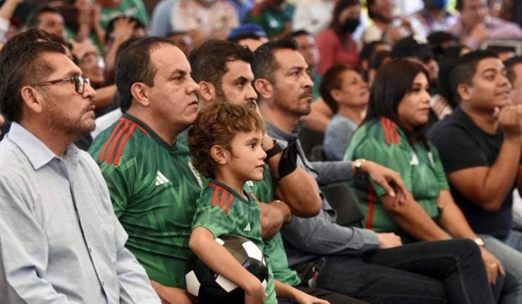 Cuernavaca, Morelos.- El Gobernador Cuauhtémoc Blanco Bravo y sus hijos asistieron al Parque de Béisbol “Miguel Alemán”, en Cuernavaca, para presenciar junto a decenas de personas el partido de futbol de la Selección Nacional de México contra Argentina, en la Copa del Mundo Qatar 2022.