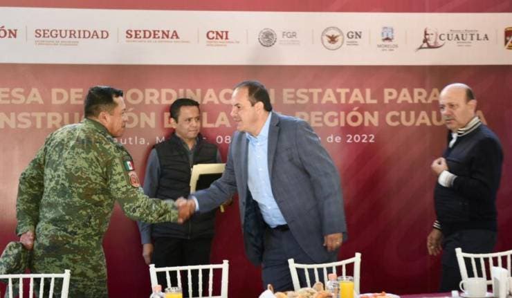 Cuautla, MORELOS.- Cuauhtémoc Blanco, mandatario estatal hizo un llamado a no bajar la guardia y seguir trabajando en conjunto para desarticular a los personajes que pretenden desestabilizar la tranquilidad en Morelos, lo anterior en presencia de Santiago Segui Amortegui, director general de Coordinación con Entidades Federativas Zona 2, de la Secretaría de Seguridad Pública y Protección Ciudadana (SSPC), representantes de la Comisión Estatal de Seguridad Pública (CES) Morelos, Secretaría de la Defensa Nacional (Sedena) y Guardia Nacional (GN).