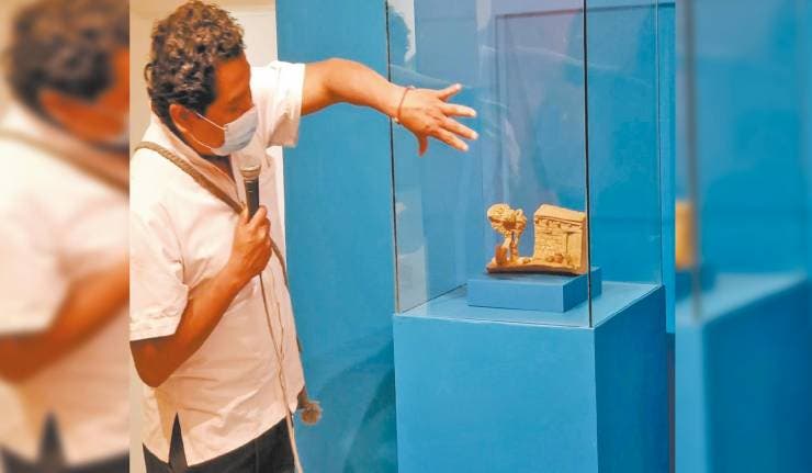 El artista mencionó que la obra exhibida “representa un homenaje a nuestras artesanas de la comunidad de Hueyapan, arte que contiene un patio tradicional, con una casita de adobe, con teja en madera, al igual que la puerta; afuera se pueden ver las tinajas, una gallina, los hilos para el bordado y el árbol que ellas utilizan para elaborar sus piezas”, puntualizó.