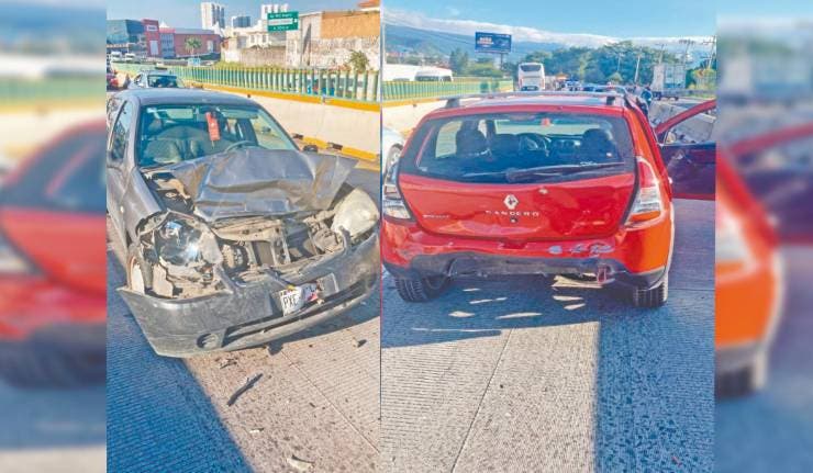 El hecho en el que se vieron involucrados un Seat Ibiza, con placas PYU 017-C de Morelos; un Nissan March gris, placas PXR 802-B de Morelos; un Platina, con matrícula PXE 828-C de Morelos; y una Renault Sendero roja, se suscitó la mañana de ayer en los carriles que van de sur a norte, a la altura de la colonia Milpillas.