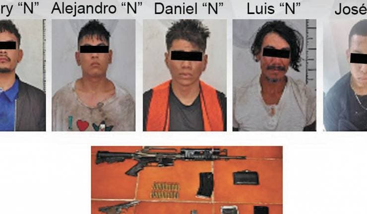Yecapixtla, MORELOS.- Por los delitos de homicidio en grado de tentativa y violación a la Ley Federal de Armas de Fuego y Explosivos fueron puestos a disposición del Ministerio Público los cinco sujetos detenidos el pasado martes tras un enfrentamiento con policías.