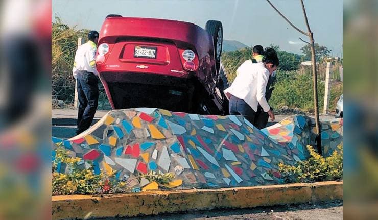 Con las llantas para rriba quedó una camioneta Minicooper, color beige, al volcar la tarde de ayer los carriles centrales del Paso Express, cerca de Plaza Galerías, en Cuernavaca. Paramédicos atendieron al chofer en el lugar ya que sólo sufrió golpes leves.