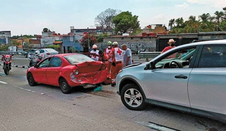 Cuernavaca.- Por el exceso de velocidad y la falta de precaución, la tarde del jueves se registró una aparatosa carambola entre cuatro vehículos sobre el Paso Express a la altura de la colonia Satélite de Cuernavaca. Hasta el sitio llegaron paramédicos de la Cruz Roja que se encargaron de atender a tres de los tripulantes.