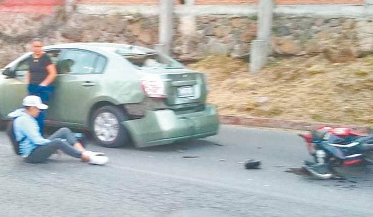 Motociclista se impacta por alcance con auto en Av. Juan Pablo II