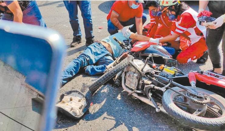 Resulta lesionado peatón embestido por motociclista