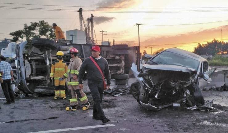 Cuautla, MORELOS.- Un aparatoso accidente entre un camión y un auto particular se registró durante la mañana de este sábado en el Libramiento Oriente.