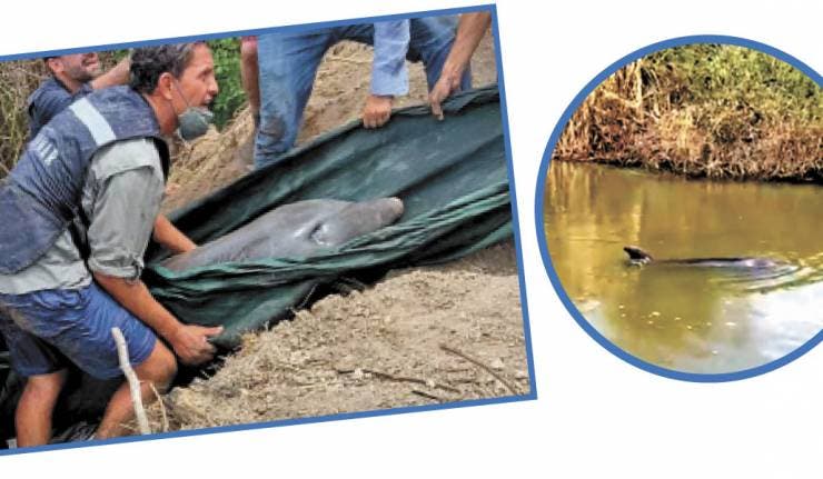 La tarde del pasado martes fue rescatado en Navolato, Sinaloa, uno de los dos delfines que resultaron atrapados en un canal de riego a inicios de la semana.