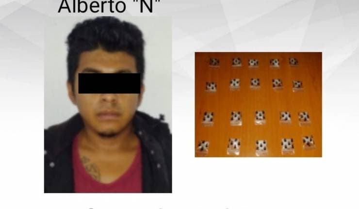 Elementos que integran la Estrategia de Seguridad Mando Coordinado Policía Morelos detuvieron a un hombre por su probable participación en delitos contra la salud, en el municipio de Jiutepec.