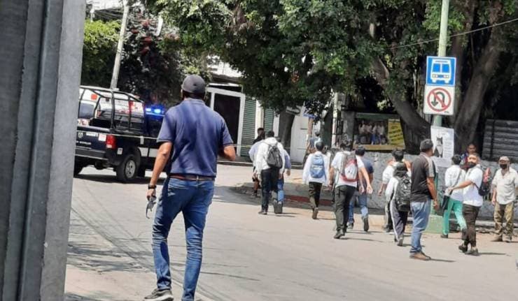 Autoridades del plantel resguardan a los estudiantes en las instalaciones.