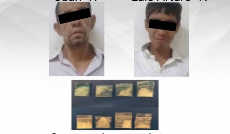 Elementos del Mando Coordinado Policía Morelos detuvieron a dos hombres por su presunta responsabilidad en Delitos Contra la Salud, en el municipio de Jiutepec.