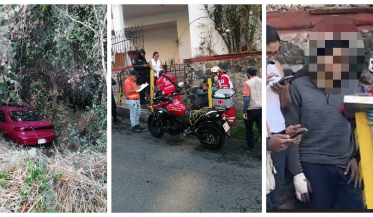 La mañana de este miércoles, un jovn conductor perdió el control de su vehículo y se fue a la barranca ubicada junto a la calle Laurel de la Colonia Lagunilla en Cuernavaca.