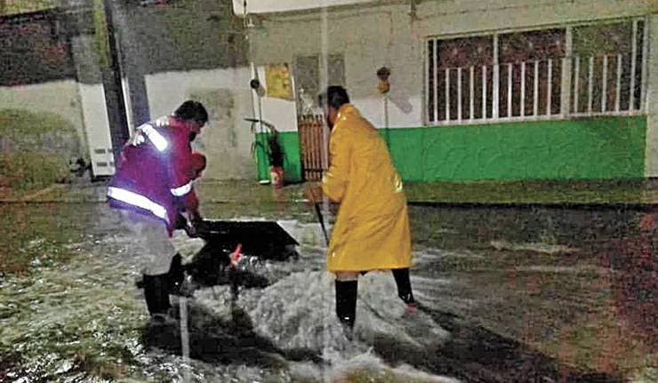 En la colonia Base Tranquilidad, en la calle Apolo XI, dos casas resultaron con afectaciones; en una de ellas tuvieron que rescatar a unos niños tras la entrada del agua.