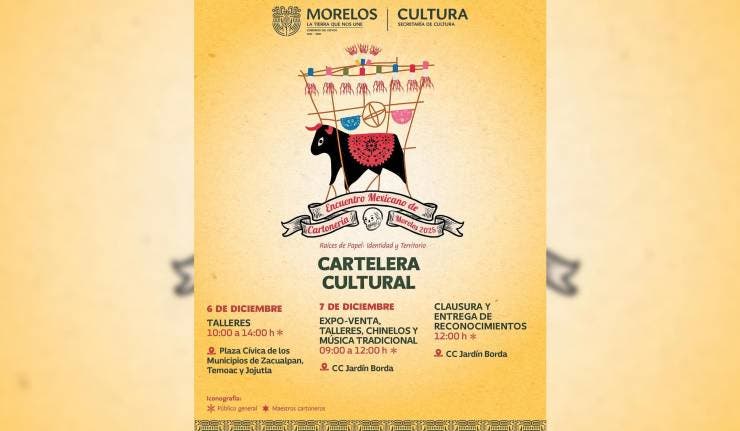 Con el objetivo de impulsar las tradiciones de cartonería, la producción artesanal y reforzar la cohesión social en el estado de Morelos, la Secretaría de Cultura realizará del 5 al 7 de diciembre, el Encuentro Mexicano de Cartonería en diferentes municipios de la entidad.