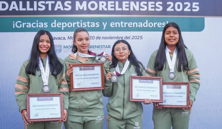 Cuernavaca.- El Instituto del Deporte y Cultura Física del Estado de Morelos reconoció el destacado desempeño de la atleta morelense Lorena Azarel Pérez Cortez, integrante del equipo de básquetbol que obtuvo la medalla de plata en la pasada Olimpiada Nacional celebrada en Tlaxcala. En este logro también participaron Marian Chrisell Del Ángel González, Karla Janeth Ramos Jaimes y Liah Fernanda Villegas Palma, quienes representaron a Morelos en la justa nacional.