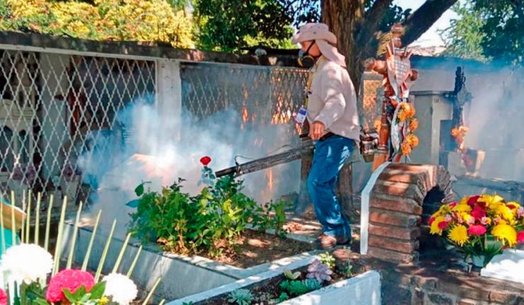 Cuernavaca, Morelos.- Ante la asistencia de la población en panteones durante Día de Muertos, que se conmemora 01 y 02 de noviembre, Servicios de Salud de Morelos (SSM) pidió a autoridades municipales reforzar acciones de saneamiento y limpieza en cementerios para eliminar criaderos de mosquitos transmisores de dengue, zika y chikungunya.