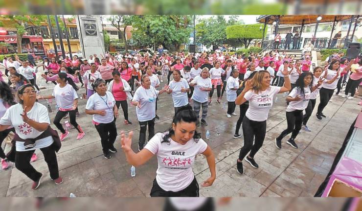 En el marco del Día mundial de la lucha contra el cáncer de mama, el DIF de Jiutepec organizó una clase de zumba en el zócalo del municipio para promover la práctica de la actividad física como un hábito para prevenir el padecimiento que se presenta principalmente en mujeres mayores de 40 años.