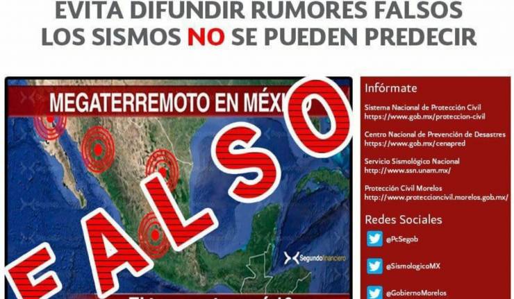 Llaman en Morelos a no difundir información falsa sobre pronóstico de sismos