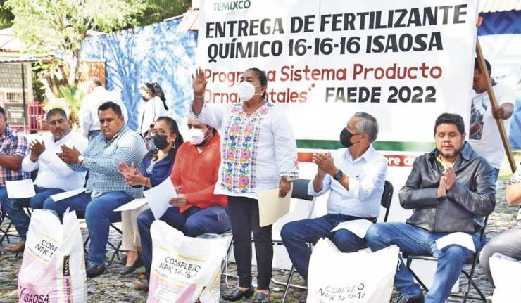 La alcaldesa Juanita Ocampo Domínguez hizo entrega de 72 toneladas de fertilizante para 80 productores de rosa, que serán utilizados para 110 hectáreas.