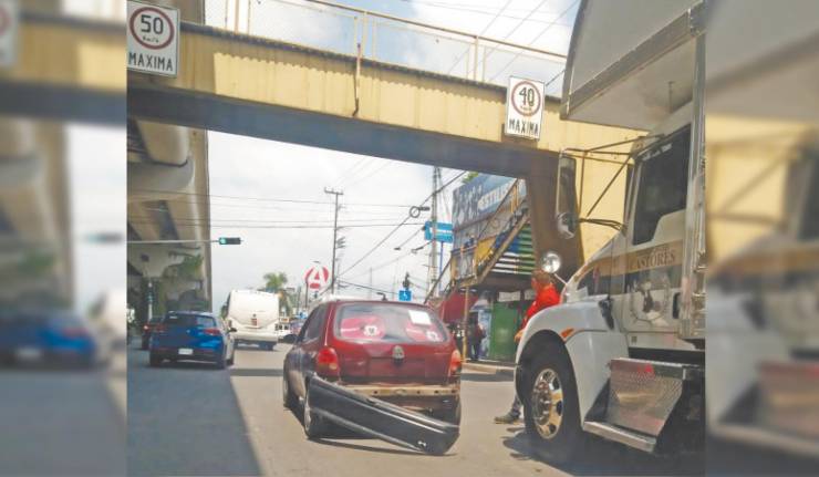 Sin facia trasera quedó un Chevy, color vino, luego de que un camión de la paquetería “Castores” lo impactó en Paseo Cuauhnáhuac, a la altura del crucero de Tejalpa, aunque únicamente se reportaron daños materiales. Por STAFF / DDM