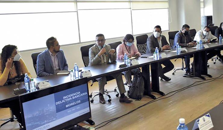 Cuernavaca, Morelos.- Como parte de los trabajos que realiza la Comisión Estatal de Seguridad Pública (CES), en coordinación con integrantes de asociaciones civiles y empresariales, se llevó a cabo una reunión de análisis de riesgos y acciones para prevenir robos a cuentahabientes dentro y fuera de las instituciones bancarias.