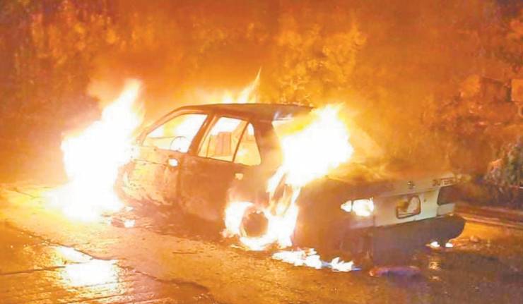 Policías encontraron un taxi Tsuru, con placas A-093-LTS, el cual estaba envuelto en llamas, por lo que bomberos de Cuernavaca se encargaron de apagarlas.
