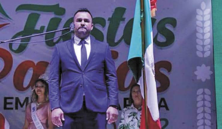 El alcalde de Emiliano Zapata, Sergio Alba Esquivel, encabezó la ceremonia del Grito de Independencia en el zócalo del municipio.