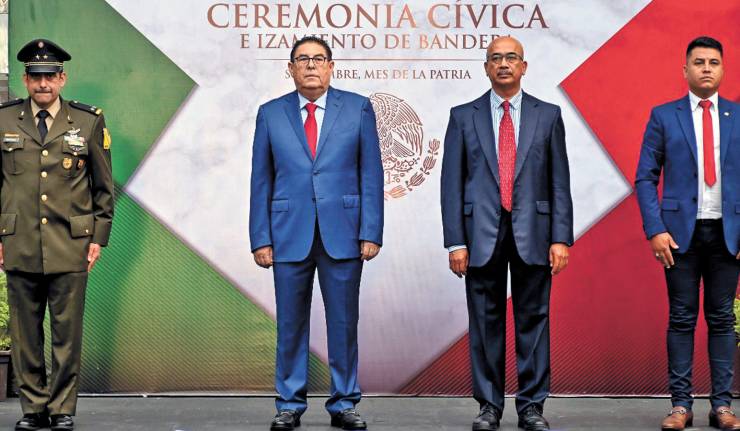 Víctor Mercado Salgado, titular de la Secretaría de Movilidad y Transporte (SMyT), encabezó la ceremonia cívica y honores al lábaro patrio, en donde recordó a los héroes que dieron su vida por lograr una nación libre e independiente. Mercado Salgado, acompañado de autoridades de los tres órdenes de gobierno, llevó a cabo el izamiento y honores a la enseña tricolor.