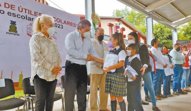 JIUTEPEC, MORELOS.- Un total de 32 mil paquetes de útiles escolares fueron entregados ayer de manera gratuita a estudiantes de preescolar, primaria y secundaria, con una inversión de cinco millones de pesos que provienen de recursos propios del gobierno municipal, señaló Rafael Reyes Reyes, edil de Jiutepec.