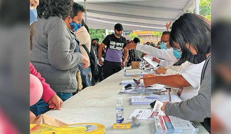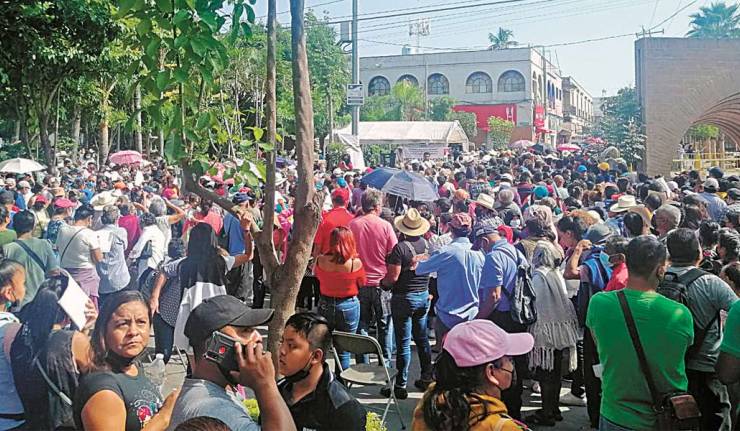 A pesar del calor, los rayos del sol y del termómetro que marcaba antes del mediodía 28 grados, las largas filas se formaban en las calles principales del centro de Jojutla.