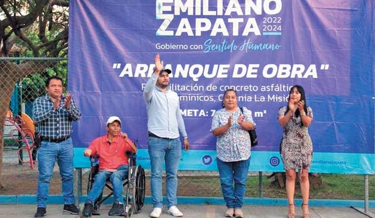 El alcalde de Emiliano Zapata, Sergio Alba Esquivel, en compañía de vecinos de la colonia La Misión de la calle Dominicos, atestiguó el arranque de obra para la rehabilitación de concreto asfáltico que beneficiará a cientos de familia de la zona y lugares aledaños.