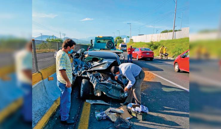 Xochitepec.- Un hombre de la tercera edad resultó lesionado tras sufrir un aparatoso accidente cuando circulaba en un Chevrolet Beat por la Autopista México-Acapulco, a la altura del Tec de Monterrey, en Xochitepec, donde fue impactado por detrás por una pipa, lo que ocasionó que dieran varias vueltas hasta chocar contra el muro.