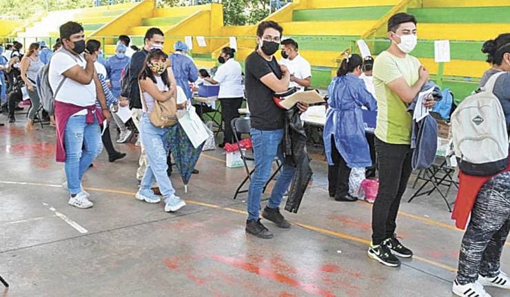Gran afluencia de jóvenes de 18 a 29 años de edad se registró en los módulos de vacunación contra el COVID19, ubicados en la ciudad de Cuautla; desde la madrugada se formaron para recibir la segunda dosis.